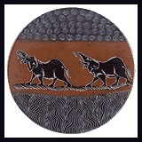 30006-Two lumbering rhinos make their way across the African plain on this colorful,