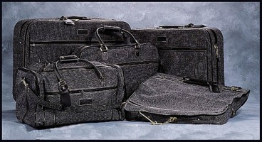 21943-5 piece luggage set in tweed jute material includes 2 pullmans, one duffel