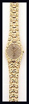 22959-Man's heavy nugget watch with classic round champagne dial. Simulated diamond