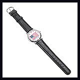 patriotic, " United We Stand" watch has a red, white, and blue dial and quartz