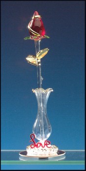 28206-The sentiment of "Love" is expressed in the beauty of a red rosebud. Vase base