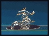28211-Sculptured glass dolphins are a sleek duo as they soar gracefully over a pink