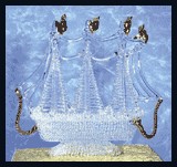 29495-Three masted with gold-plated accompaniments, this spun-glass ship is ready