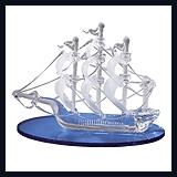 31457-Sailing on a sea blue base this spun glass ship is a fine gift for lovers of